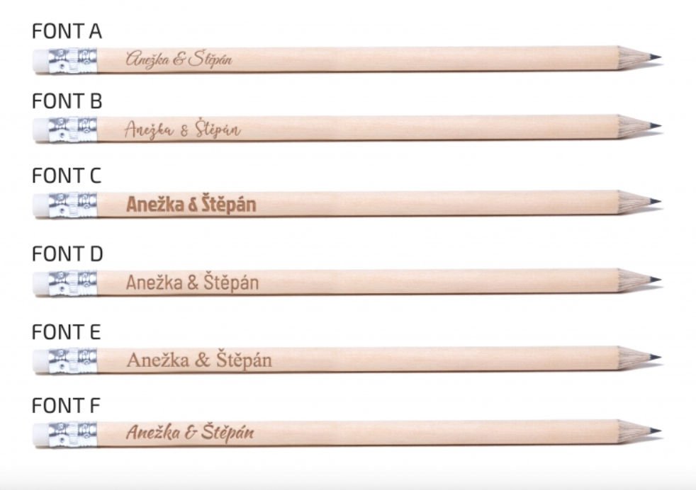 Do poznámky v objednávce nebo emailem nám pošlete text, který chcete vygravírovat a také zvolený font.